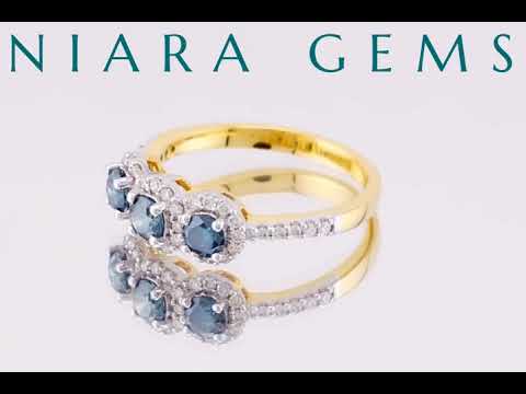 แหวนทองประดับเพชรและพลอยสีน้ำเงินสามเม็ด