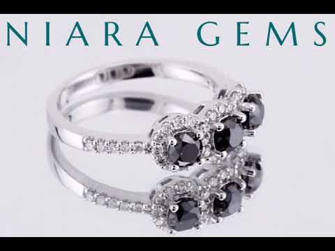แหวนทองคำขาวประดับเพชรดำและเพชรขาวสุดหรูหรา